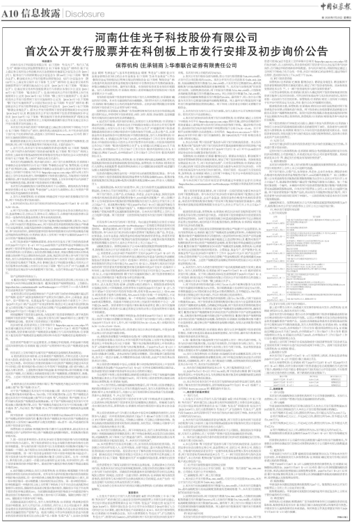 19、本次股票发行后拟在科创板上市,该市场具有较高的投资风险。科创板公司具有研发投入大、经营风险高、业绩不稳定、退市风险高等特点,投资者面临较大的市场风险。投资者应充分了解科创板市场的投资风险及本公司《河南仕佳光子科技股份有限公司首次公开发行股票并在科创板上市招股意向书》(以下简称“《招股意向书》”)中披露的风险因素,审慎作出投资决定。