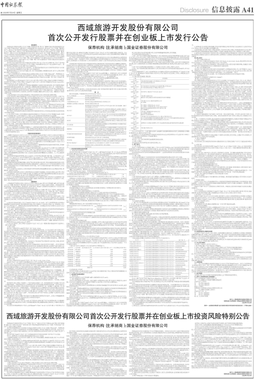 西域旅游开发股份有限公司首次公开发行股票并在创业板上市投资风险特别公告