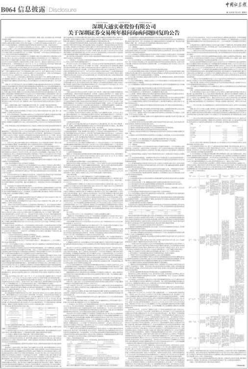 深圳大通实业股份有限公司(以下简称 “公司”)收到深圳证券交易所发出的《关于对深圳大通实业股份有限公司的年报问询函》(公司部年报问询函[2020]第144号),公司进行了认真自查和核实,已按照相关要求向深圳证券交易所作出回复。回复内容如下: