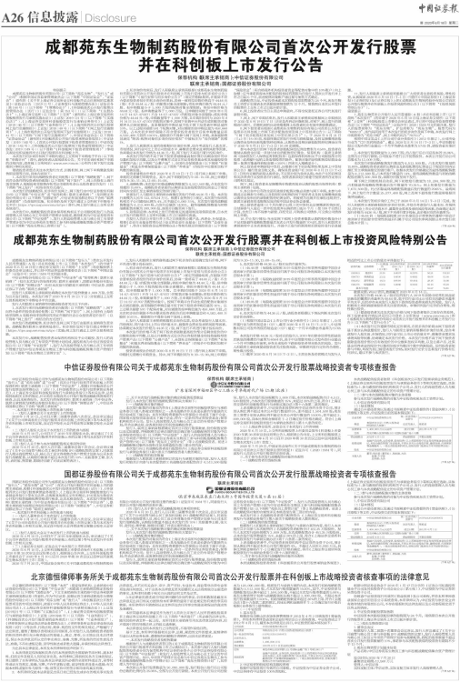 成都苑东生物制药股份有限公司首次公开发行股票并在科创板上市投资风险特别公告