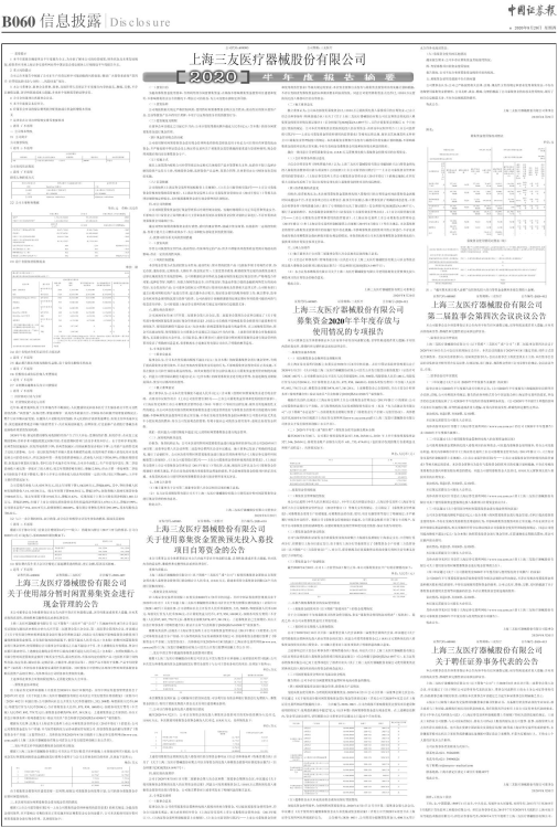 具体内容详见同日刊载于上海证券交易所网站(www.sse.com.cn)的《上海三友医疗器械股份有限公司募集资金2020年半年度存放与使用情况的专项报告》。