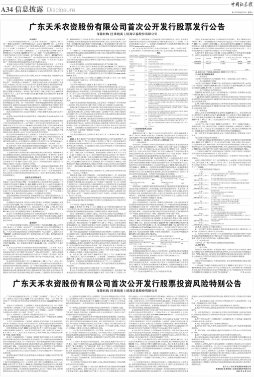 广东天禾农资股份有限公司首次公开发行股票投资风险特别公告