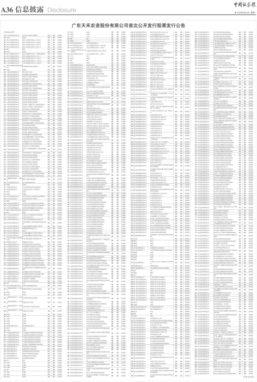 广东天禾农资股份有限公司首次公开发行股票发行公告