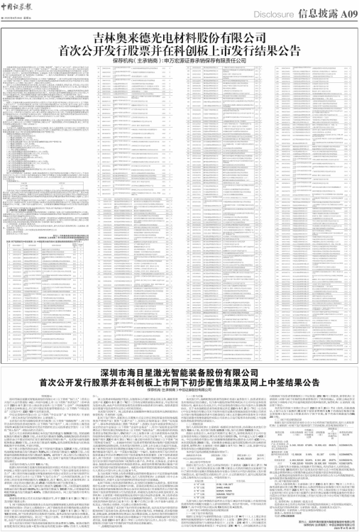 首次公开发行股票并在科创板上市网下初步配售结果及网上中签结果公告