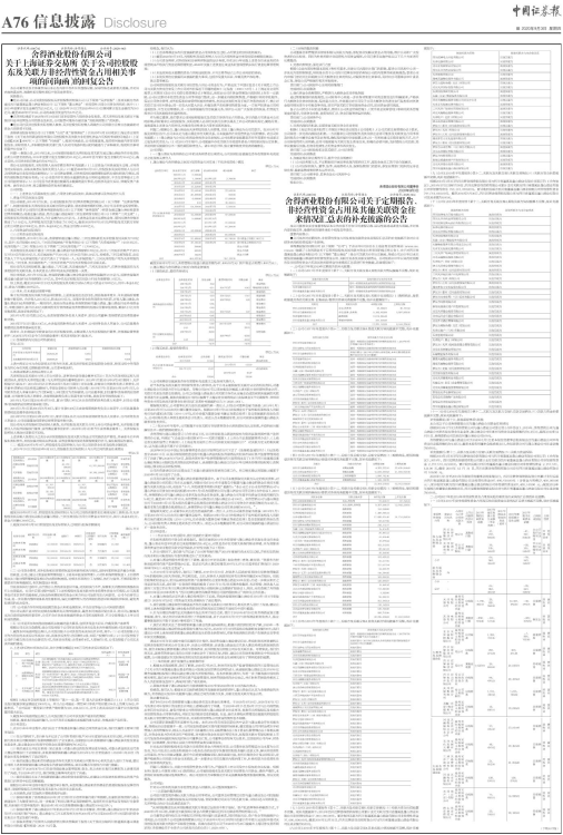 舍得酒业股份有限公司关于定期报告、非经营性资金占用及其他关联资金往来情况汇总表的补充披露的公告