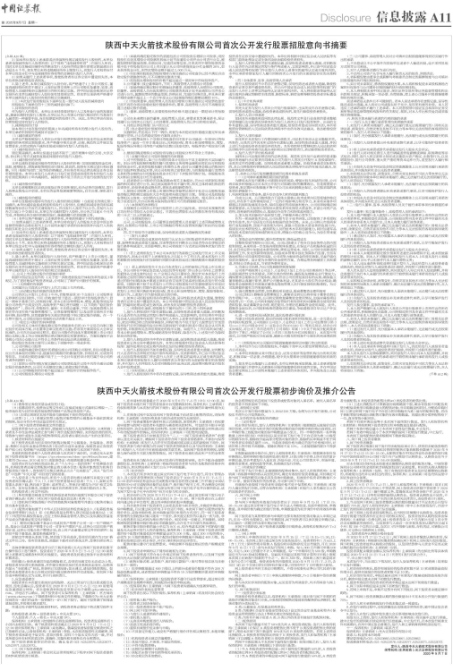 陕西中天火箭技术股份有限公司首次公开发行股票初步询价及推介公告