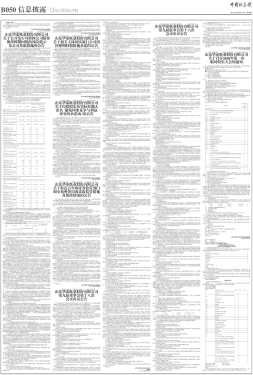 证券代码:600308 股票简称:华泰股份 编号:2020-020