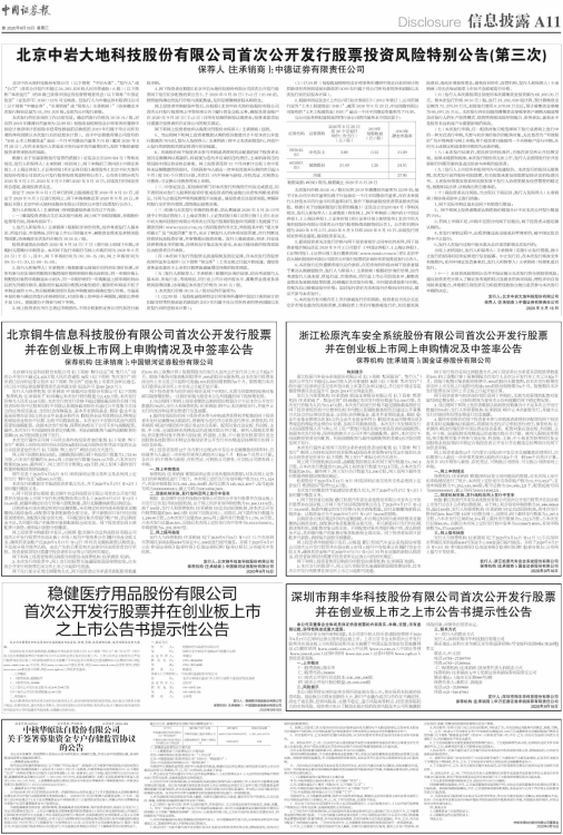 北京中岩大地科技股份有限公司首次公开发行股票投资风险特别公告(第三次)