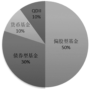 对于风险偏好较高的投资者来说,偏股型基金、债券型基金、货币市场基金和QDII基金(包括主要投资港股的基金)的资金分配可依照5:3:1:1的比例为中枢进行配置;对于风险偏好中等的投资者来说,则可按照4:4:1:1的比例为中枢进行配置;对于风险偏好较低的投资者来说,则可按照2:5:2:1的比例为中枢进行配置。