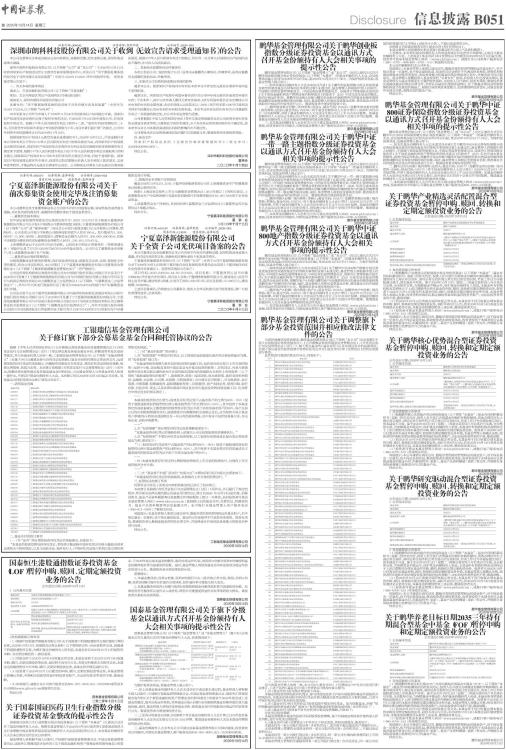 鹏华基金管理有限公司(以下简称“基金管理人”或“本公司”)决定以通讯方式召开鹏华创业板指数分级证券投资基金(以下简称“本基金”)的基金份额持有人大会,会议投票表决起止时间为2020年9月28日起,至2020年10月28日17:00止。为保护投资者利益,现基金管理人提示如下: