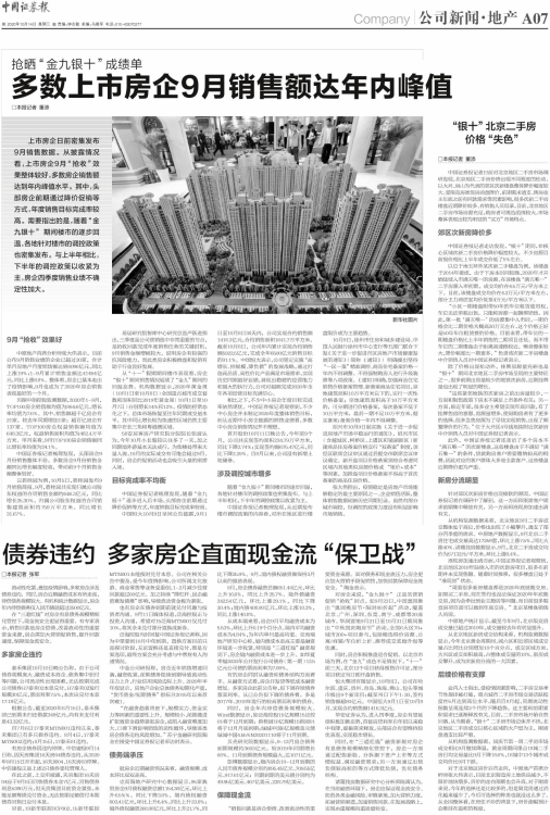 多数上市房企9月销售额达年内峰值