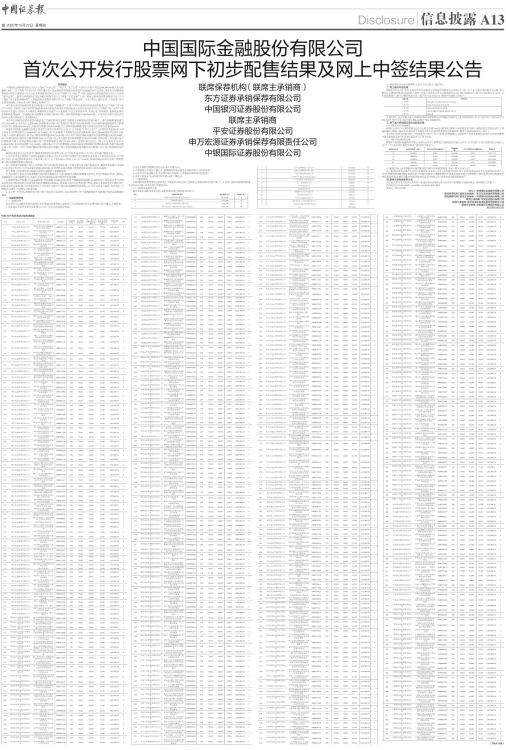 首次公开发行股票网下初步配售结果及网上中签结果公告