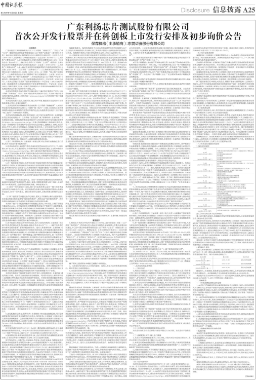 17、本次股票发行后拟在科创板上市,该市场具有较高的投资风险。科创板公司具有研发投入大、经营风险高、业绩不稳定、退市风险高等特点,投资者面临较大的市场风险。投资者应充分了解科创板市场的投资风险及本公司《广东利扬芯片测试股份有限公司首次公开发行股票并在科创板上市招股意向书》(以下简称“《招股意向书》”)中披露的风险因素,审慎作出投资决定。