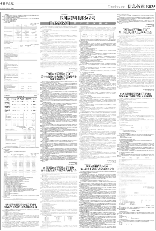 四川福蓉科技股份公司(以下简称“公司”)于2020年10月21日召开第二届董事会第六次会议,会议审议通过了《关于使用自有闲置资金进行现金管理的议案》。为了提高公司的资金使用效率,在不影响公司正常经营的情况下,公司拟使用不超过人民币30,000万元的自有闲置资金进行现金管理,以便更好地实现公司现金资产的保值增值,保障公司及股东的利益。