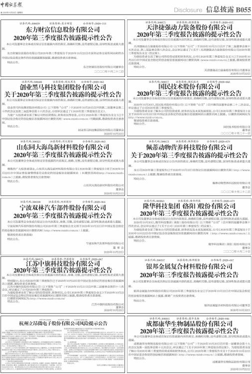 宁波双林汽车部件股份有限公司2020年第三季度报告全文将于2020年10月22日在中国证监会指定的创业板信息披露网站巨潮资讯网(http://www.cninfo.com.cn)上披露。