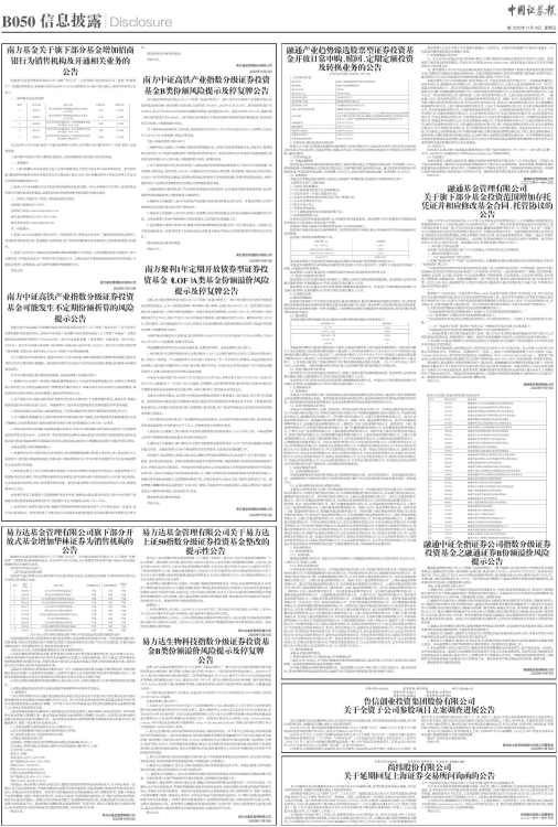 易方达基金管理有限公司关于易方达上证50指数分级证券投资基金整改的提示性公告