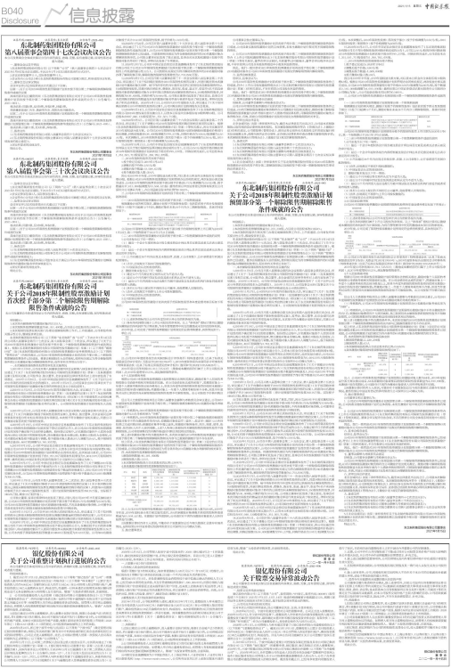 11.2020年2月7日,公司在中国证监会指定信息披露媒体发布了《东北制药集团股份有限公司关于公司2018年限制性股票激励计划首次授予部分第一个解除限售期解除限售股份上市流通的提示性公告》,公司按照相关规定为符合解除限售条件的240名激励对象办理了解除限售手续,解除限售的限制性股票数量为2,733.2560万股。