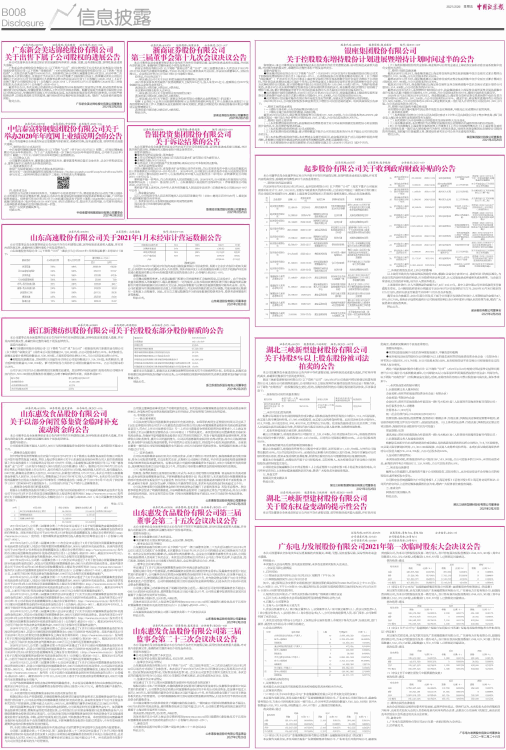 山东高速股份有限公司(以下简称“公司”)谨此公告公司2021年1月的营运数据(未经审计)如下:
