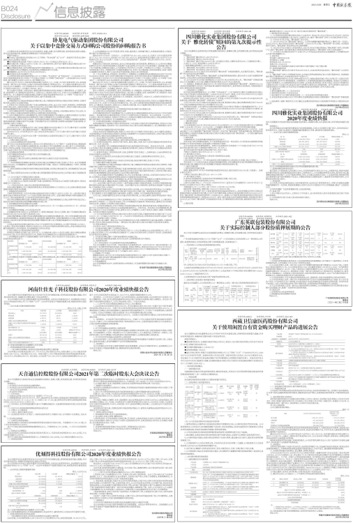 2.以上财务数据及指标以合并报表数据填列,但未经审计,最终结果以公司2020年年度报告为准。