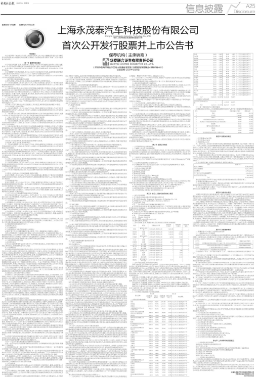 上海永茂泰汽车科技股份有限公司申请其股票上市符合《中华人民共和国公司法》、《中华人民共和国证券法》及《上海证券交易所股票上市规则》等法律、法规的有关规定,发行人股票具备在上海证券交易所上市的条件,华泰联合证券有限责任公司愿意推荐发行人的股票上市交易,并承担相关保荐责任。