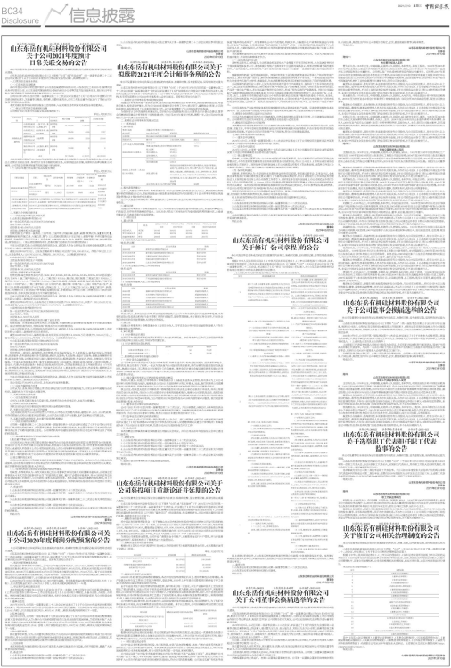 证券代码:300821 证券简称:东岳硅材 公告编号:2021-021
