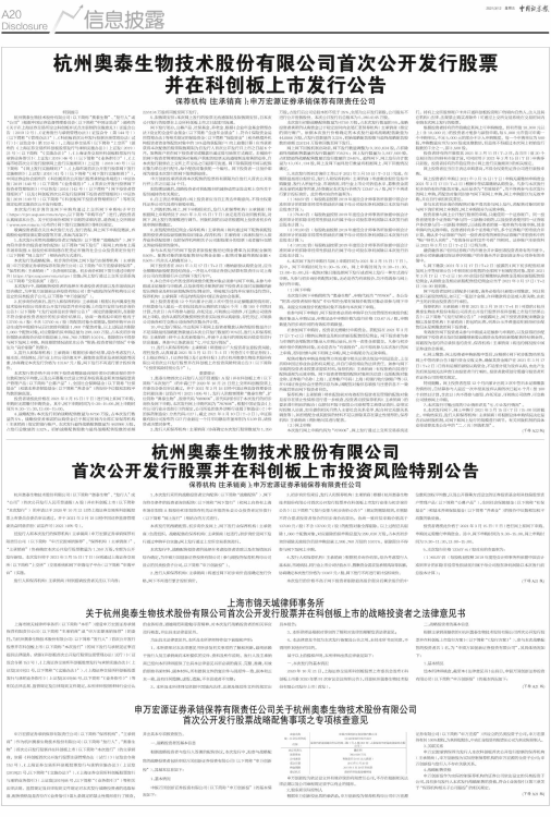 杭州奥泰生物技术股份有限公司首次公开发行股票