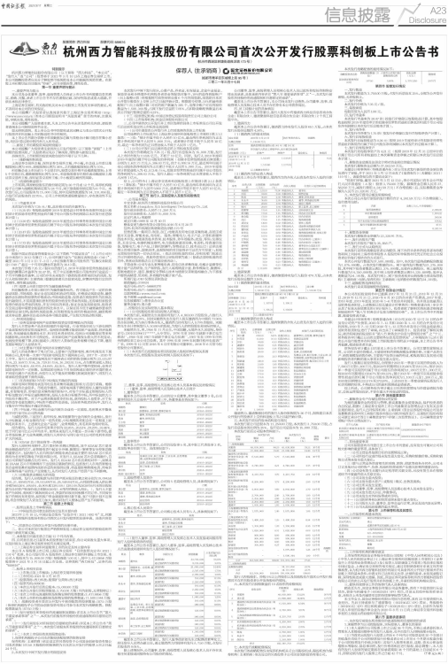 杭州西力智能科技股份有限公司首次公开发行股票科创板上市公告书