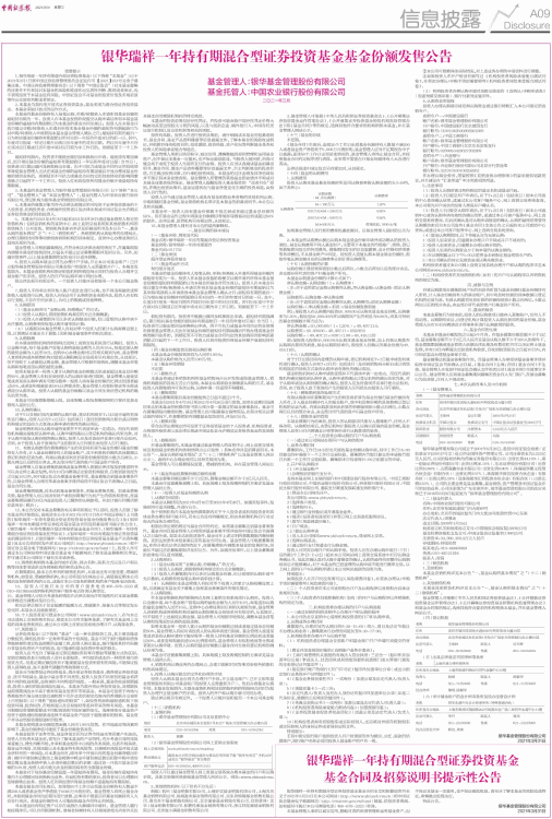 12、本公告仅对本基金募集的有关事项和规定予以说明。投资人若欲了解本基金的详细情况,请阅读本公司于2021年3月31日在《中国证券报》上刊登的《银华瑞祥一年持有期混合型证券投资基金基金份额发售公告》及《银华瑞祥一年持有期混合型证券投资基金基金合同及招募说明书提示性公告》。《银华瑞祥一年持有期混合型证券投资基金基金合同》、《银华瑞祥一年持有期混合型证券投资基金托管协议》、《银华瑞祥一年持有期混合型证券投资基金招募说明书》、《银华瑞祥一年持有期混合型证券投资基金基金产品资料概要》及本公告将同时发布在本公司网站(http://www.yhfund.com.cn)和中国证监会基金电子披露网站(http://eid.csrc.gov.cn/fund)上,投资人亦可通过本公司网站和中国证监会基金电子披露网站了解本基金募集相关事宜,并可通过本公司网站下载有关申请表格。