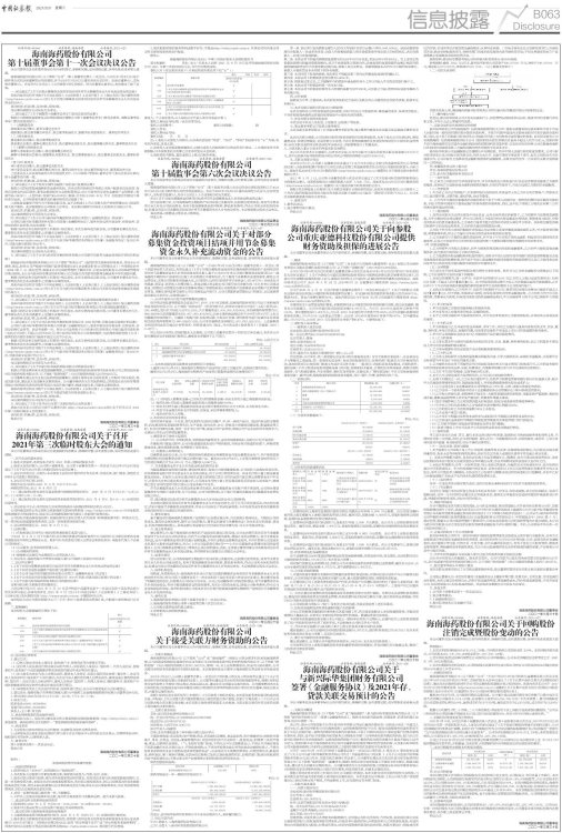 证券代码:000566 证券简称:海南海药 公告编号:2021-022