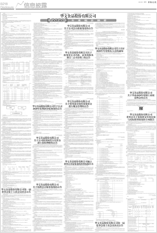 1、华文食品股份有限公司(以下简称“公司”)第一届董事会第十六次会议由董事长周劲松先生召集,会议通知于2021年3月19日通过电子邮件、电话的形式送达至各位董事,增加的议案于3月26日以电子邮件、电话等方式发出,董事会会议通知中包括会议的相关材料,同时列明了会议的召开时间、地点、内容和方式。