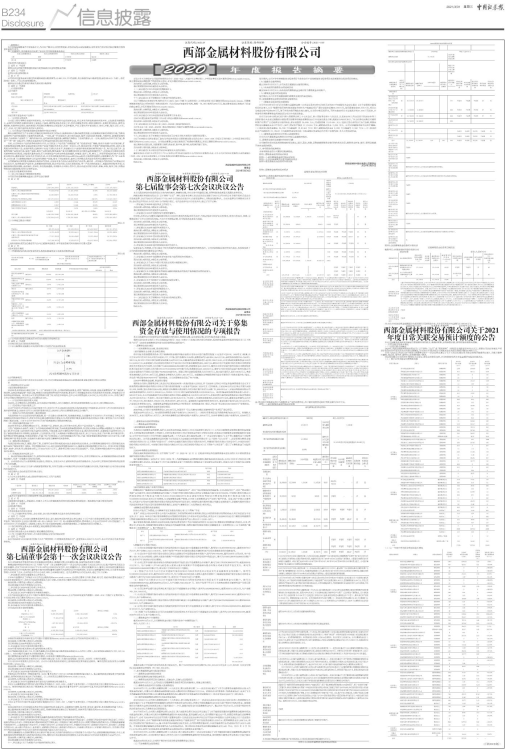 根据《深圳证券交易所上市公司规范运作指引(2020 年修订)》及相关格式指引的规定,现将西部金属材料股份有限公司(以下简称“公司”)2020年度募集资金存放与实际使用情况说明如下: