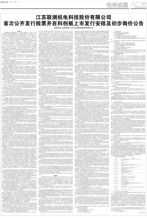 6、本次发行,发行人将进行管理层网下路演推介及网上路演推介。发行人及保荐机构(主承销商)将于2021年4月21日(T-1日)组织安排本次发行网上路演。关于网上路演的具体信息请参阅将于2021年4月20日(T-2日)刊登的《江苏联测机电科技股份有限公司首次公开发行股票并在科创板上市网上路演公告》(以下简称“《网上路演公告》”)。