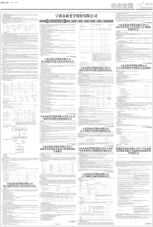 证券代码:603297 证券简称:永新光学 公告编号:2021-020