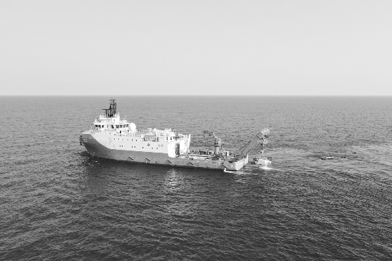 ▲ 这是载人潜水器“深海勇士”号准备回到“探索二号”母船上。