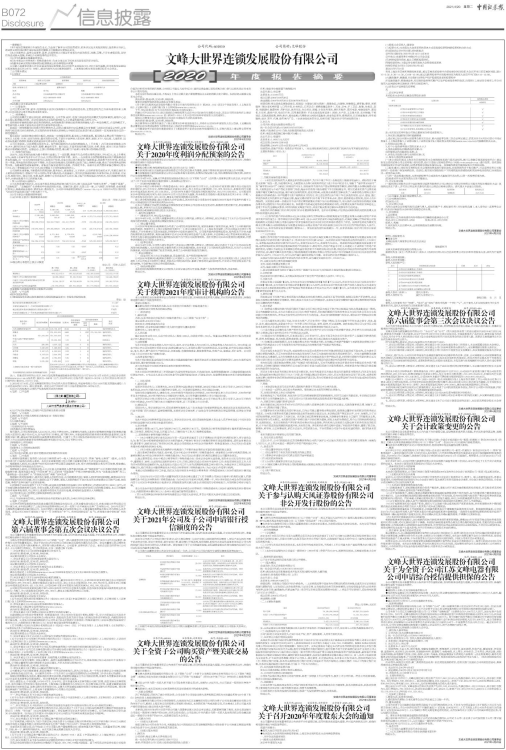 文峰大世界连锁发展股份有限公司(“本公司”或“公司”)第六届监事会第三次会议通知于2021年4月2日以电话、微信等方式通知了各位监事,会议于2021年4月16日在公司会议室召开。全体监事出席了本次会议,董事会秘书列席了会议,符合《中华人民共和国公司法》及公司章程规定的召开本次监事会的法定监事人数。监事会主席杨建华先生为本次监事会会议的主持人。