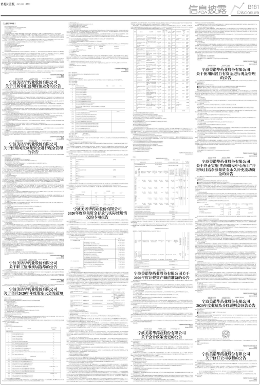 宁波美诺华药业股份有限公司(以下简称“公司”)已于2021年4月20日在上海证券交易所网站(www.sse.com.cn)披露了《2020年年度报告》及《2020年度利润分配预案公告》。