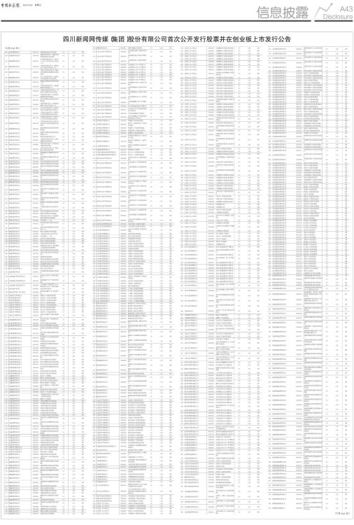 四川新闻网传媒(集团)股份有限公司首次公开发行股票并在创业板上市发行公告