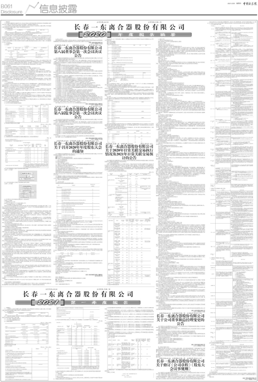 证券简称:长春一东 证券代码:600148 编号:临2021-012