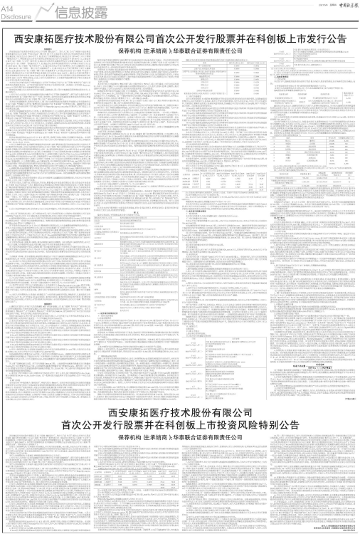 西安康拓医疗技术股份有限公司首次公开发行股票并在科创板上市发行公告