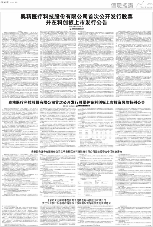 13、发行人和保荐机构(主承销商)郑重提示广大投资者注意投资风险,理性投资,认真阅读本公告及在2021年5月10日(T-1日)刊登在《上海证券报》、《中国证券报》、《证券时报》和《证券日报》上的《奥精医疗科技股份有限公司首次公开发行股票并在科创板上市投资风险特别公告》(以下简称“《投资风险特别公告》”)。