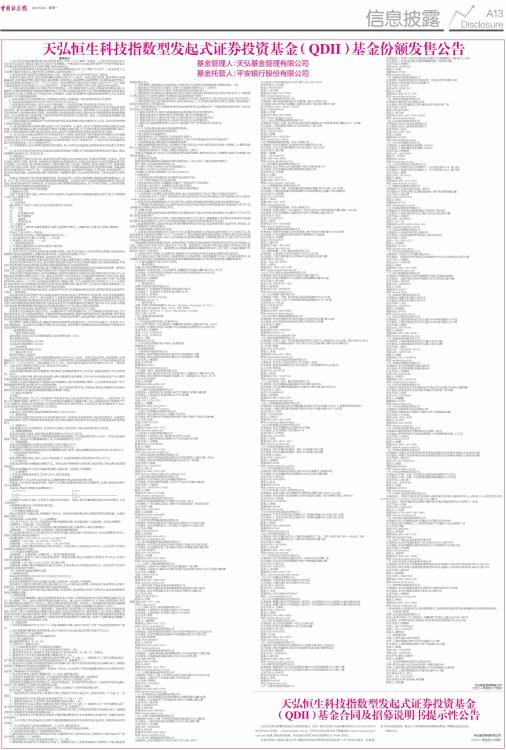 11、本公告仅对本基金发售的有关事项和规定予以说明。投资者欲了解本基金的详细情况,请仔细阅读披露在本公司网站(www.thfund.com.cn)及中国证监会基金电子披露网站(http://eid.csrc.gov.cn/fund)的《天弘恒生科技指数型发起式证券投资基金(QDII)基金合同》、《天弘恒生科技指数型发起式证券投资基金(QDII)招募说明书》。