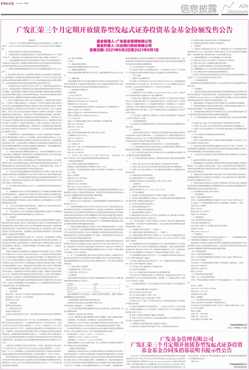 广发汇荣三个月定期开放债券型发起式证券投资基金基金份额发售公告