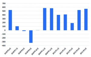 北向资金净流入额月度变化情况(亿元)