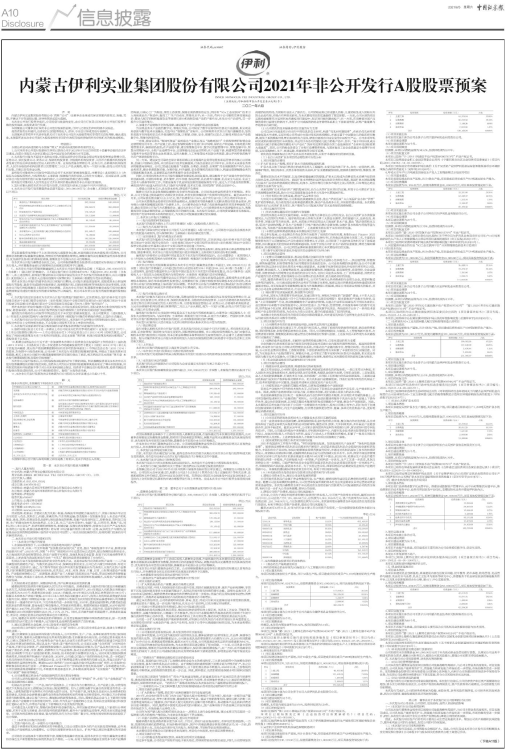 内蒙古伊利实业集团股份有限公司2021年非公开发行A股股票预案