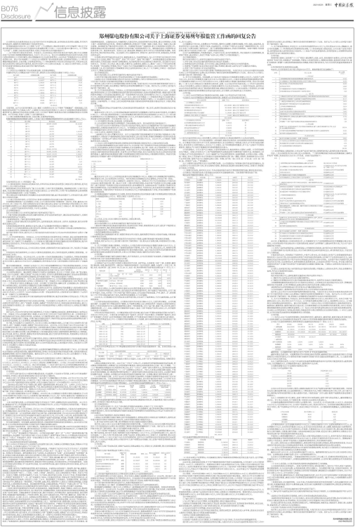 郑州煤电股份有限公司(以下简称“公司”)于近期收到上海证券交易所上市公司监管一部《关于对郑州煤电股份有限公司2020年年度报告信息披露监管工作函》(上证公函【2021】0524号,以下简称“工作函”),根据上海证券交易所要求,现就工作函中的有关问题回复如下: