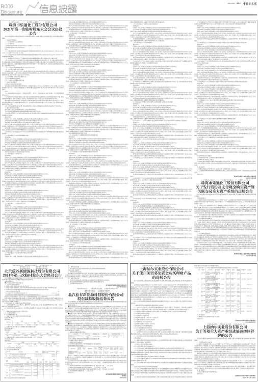 1、珠海市乐通化工股份有限公司2021年第一次临时股东大会决议。