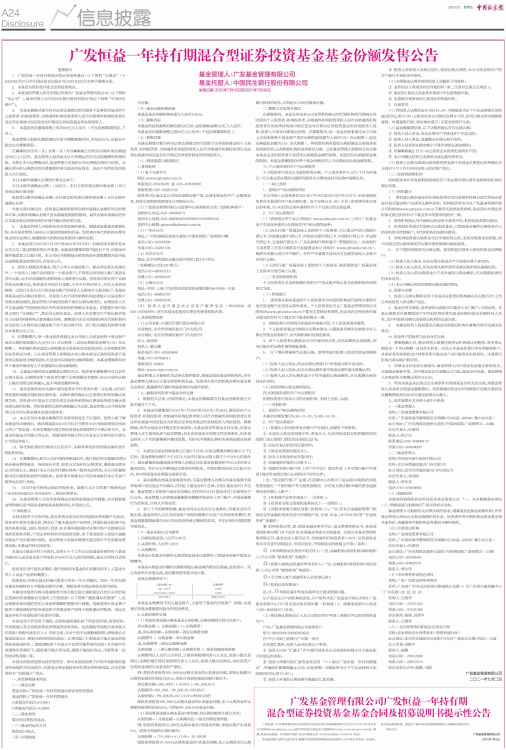 广发恒益一年持有期混合型证券投资基金基金份额发售公告