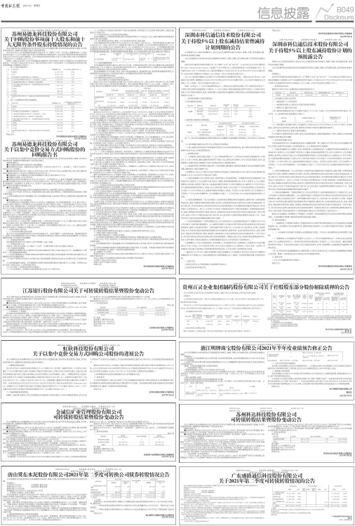 ●未转股可转债情况:截至2021年6月30日,尚未转股的“金诚转债”金额为999,827,000元,占可转债发行总额的99.9827%。