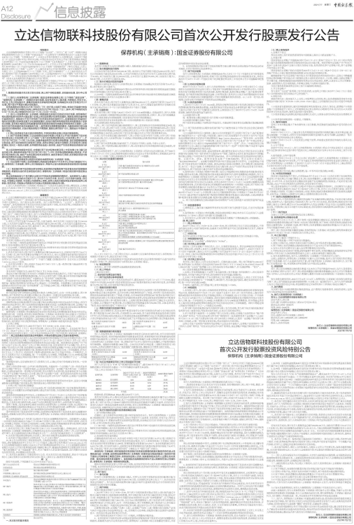 2、发行人和保荐机构(主承销商)郑重提示广大投资者注意投资风险,理性投资,认真阅读本公告及同日刊登于《中国证券报》《上海证券报》《证券日报》和《证券时报》及上交所网站(www.sse.com.cn)上的《立达信物联科技股份有限公司首次公开发行股票投资风险特别公告》。