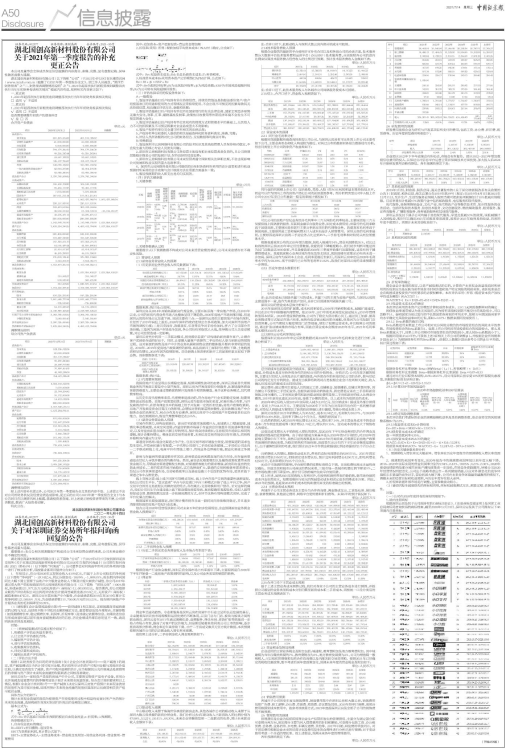 关于2021年第一季度报告的补充
